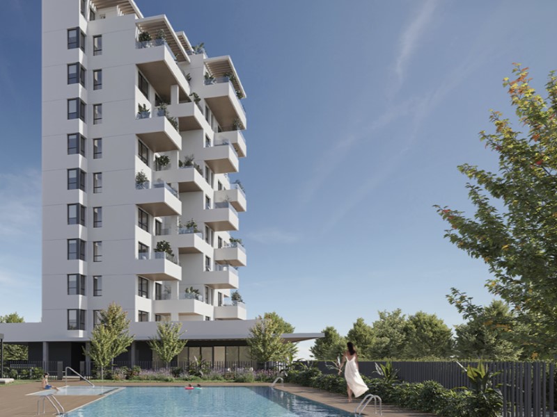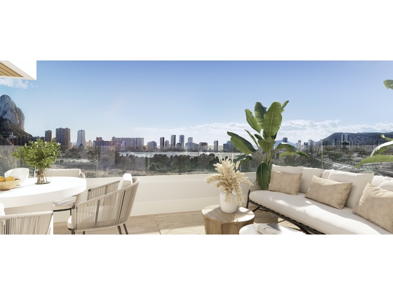 The development features a unique architectural design with two elegant 10-storey buildings, offering spacious 2- and 3-bedroom apartments. Each home includes a private terrace of 10.49 m², where you can enjoy Calpe’s excellent climate and panoramic views of the lagoon and its surroundings.