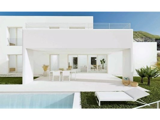 This fantastic Ibiza style new build project for sale in La Sella Golf Resort is located on an elevated plot of 1000 m2 with excellent sea views in La Sella Golf Resort, Costa Blanca.