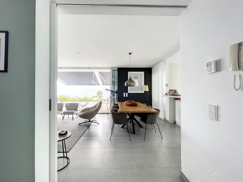On the main floor there are three double bedrooms and two bathrooms, a spacious living-dining room with open plan kitchen and a storage room. From the living-dining room and the main bedroom we access the main terrace of almost 80 m2 with the private infinity pool.