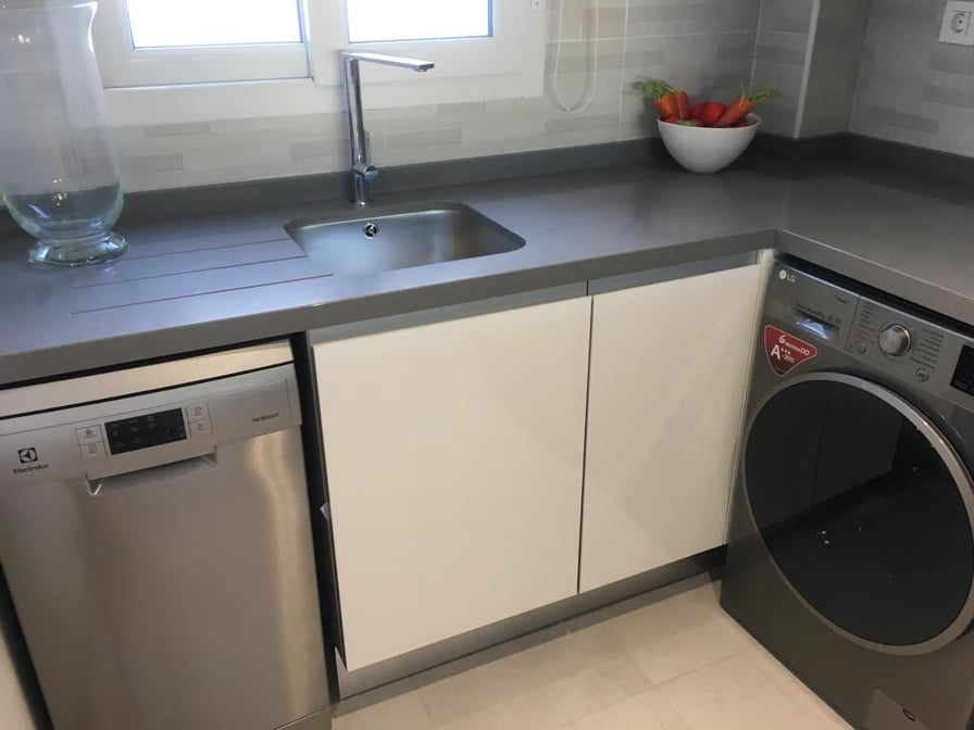 Built on individual plots, the available townhouses have: 3 bedrooms, 2 bathrooms, living room, kitchen, large outdoor terraces and private parking. The community has gardens and swimming pool. Among the extra features that we can highlight are: interior carpentry in white lacquered wood and armored entrance door, double glazed windows Climalit and tilt swing, kitchen with high and low furniture, equipped with Silestone countertop, sink with furniture in bathrooms and mixer tap and hydromassage column in master bathroom, lined wardrobes and pre-installation of air conditioning through Splits (2 units, in living room and master bedroom).